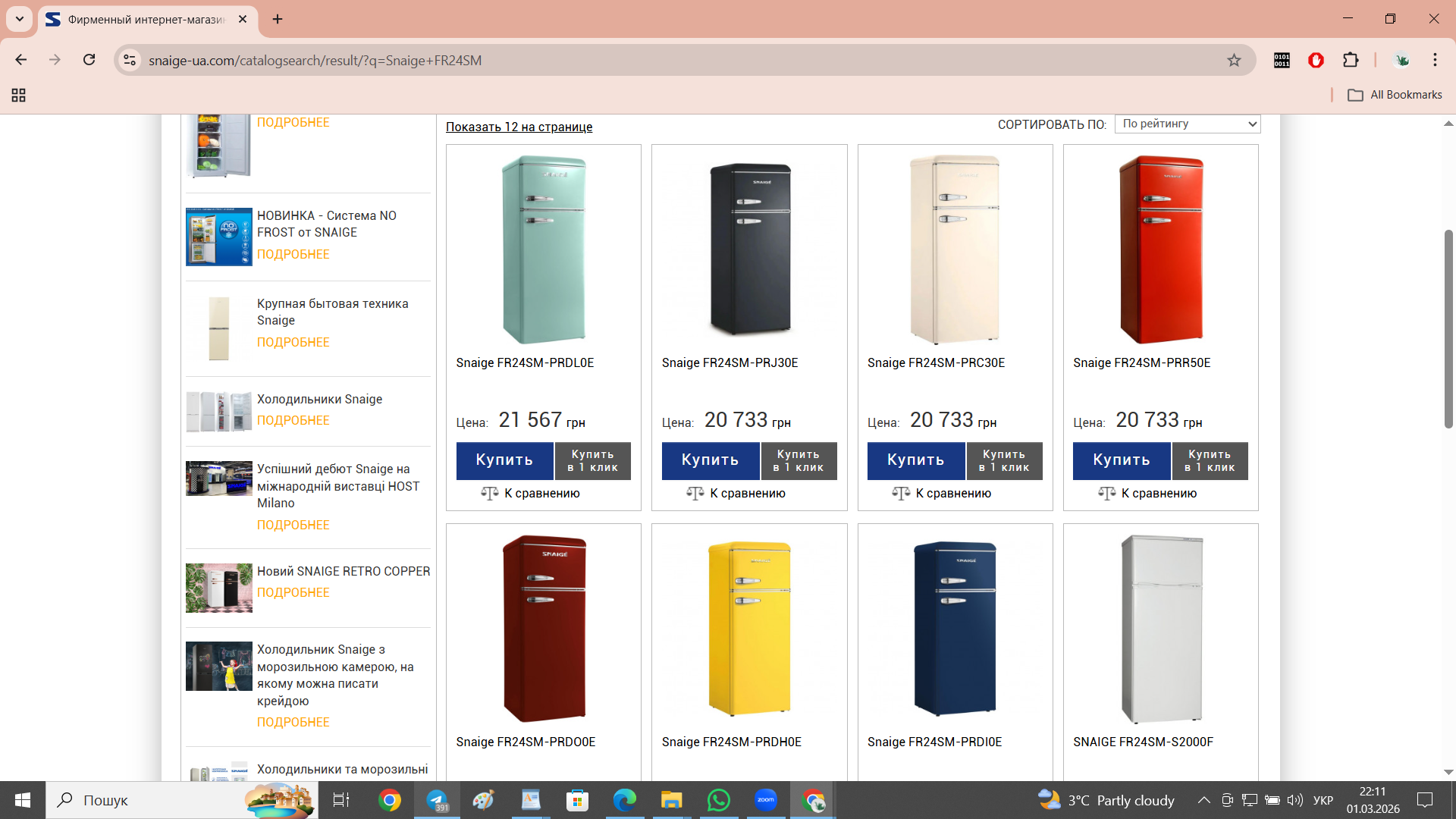 Mar. 1st, 2026 08:12 pmЯ вибираю холодильник. Я хочу Snaige в ретро стилі і обираю між кольорами. Бордовий? Жовтий? Кремовий?.. Думаю. Кухня в мене,, до речі, в стилі "чортішо та збоку бантик".